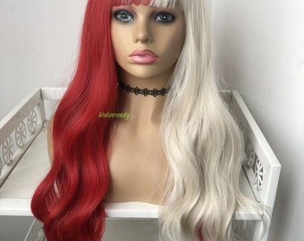 Half And Half Fresh Red Pearl White Platinum Blonde Long Etsy